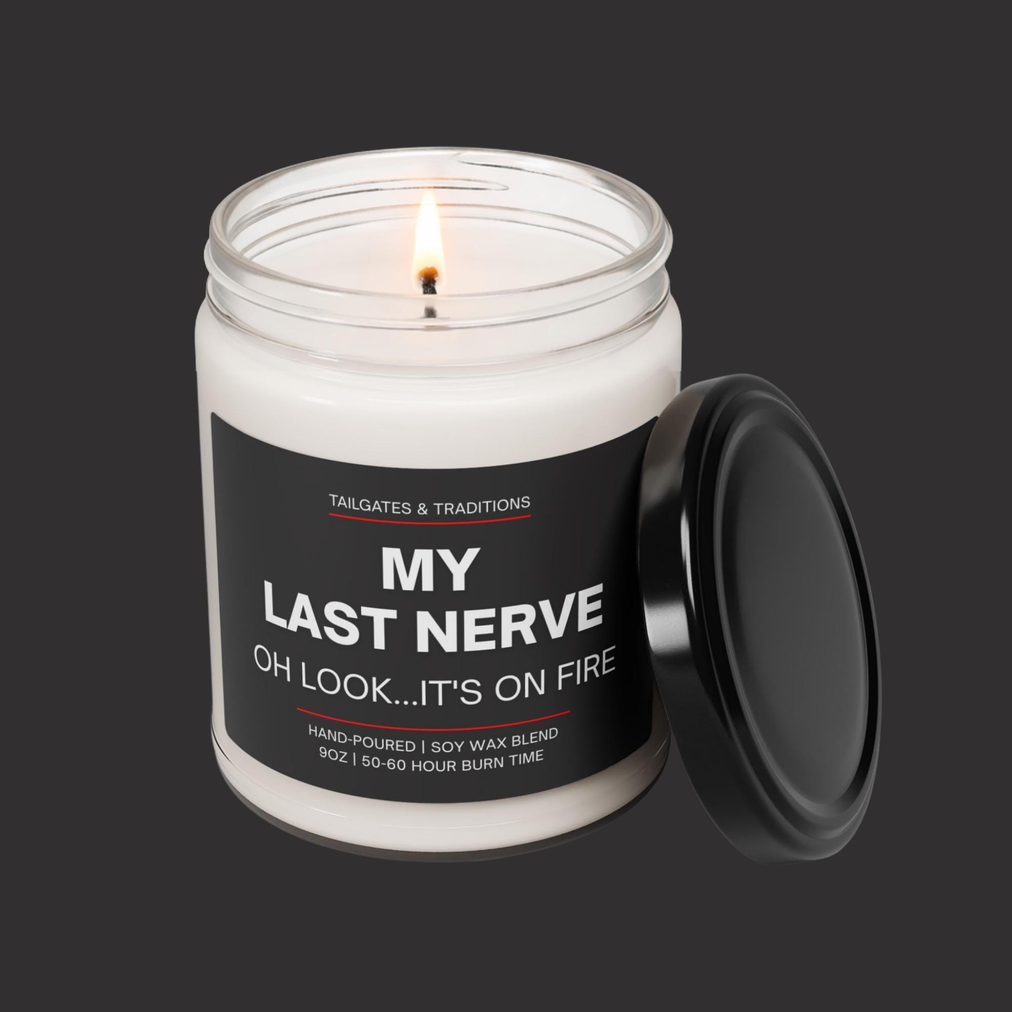 My last nerve candle is a hilarious candle, perfect for moms, parents, and anyone running on fumes. This funny adult humor candle makes the perfect personalized candle gift with a bold saying that adds laughter to any room.
