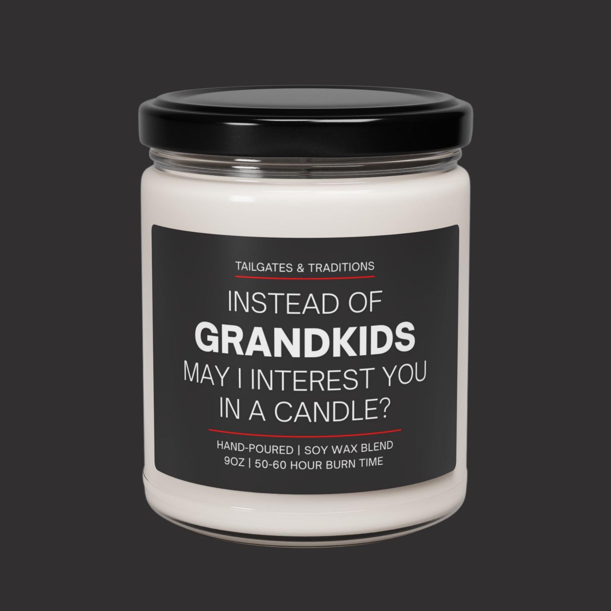 Instead of grandkids, may I interest you in a candle? This funny scented candle offers a humorous twist on a traditional gift. Infused with delightful fragrances and sarcasm, it's the perfect candle for a loved one to laugh at. Whether it's for Mother's Day, Father's Day, a birthday gift, or a holiday present, this humorous candle is a great gift idea.