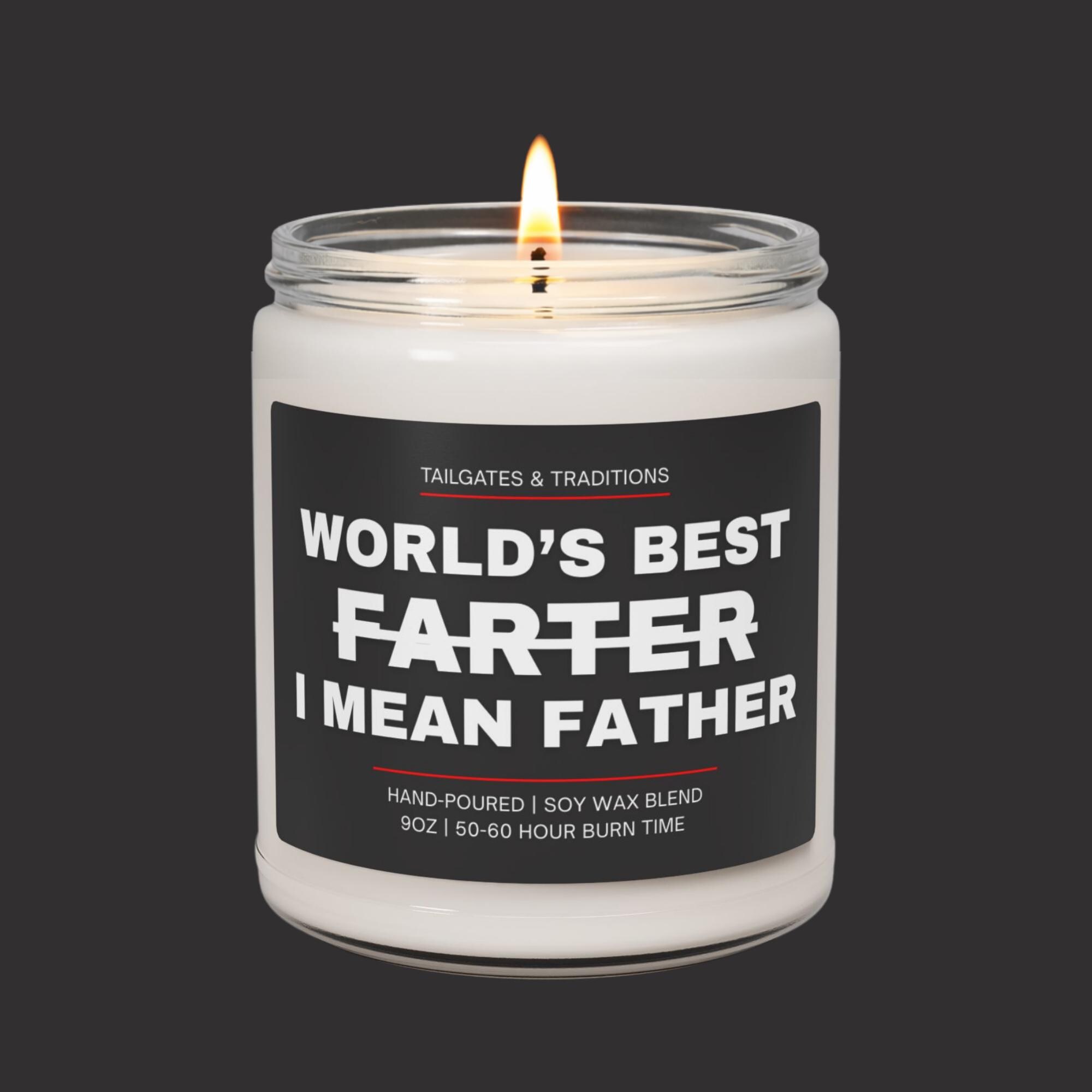 Who has the world's best farter as a father? This custom labeled scented candle is the ultimate gift for Dad. Each candle embodies an appreciation for dad in every flicker. Elevate Dad's day and surprise him with the top Dad fragrance, making it the perfect candle for the world's #1 Dad.