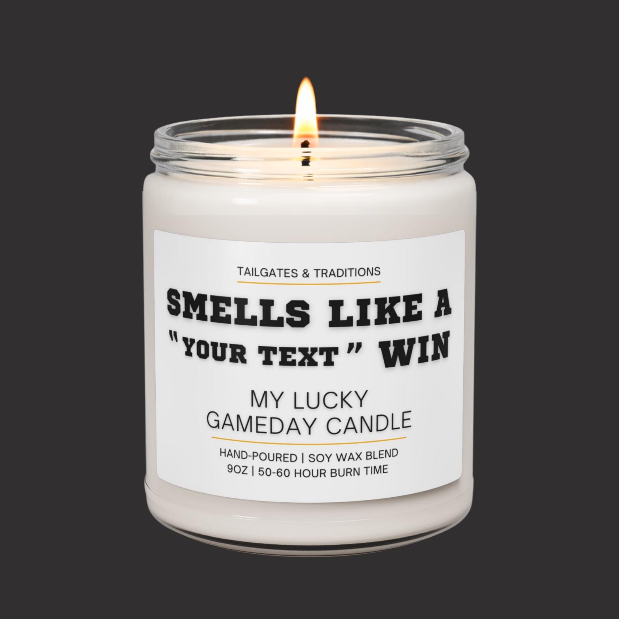 Upgrade your game day setup with a personalized candle made for your team. Featuring a bold “Smells Like A Win” label, it’s perfect for man caves, watch parties, or gifting sports fans who love fun and functional decor.