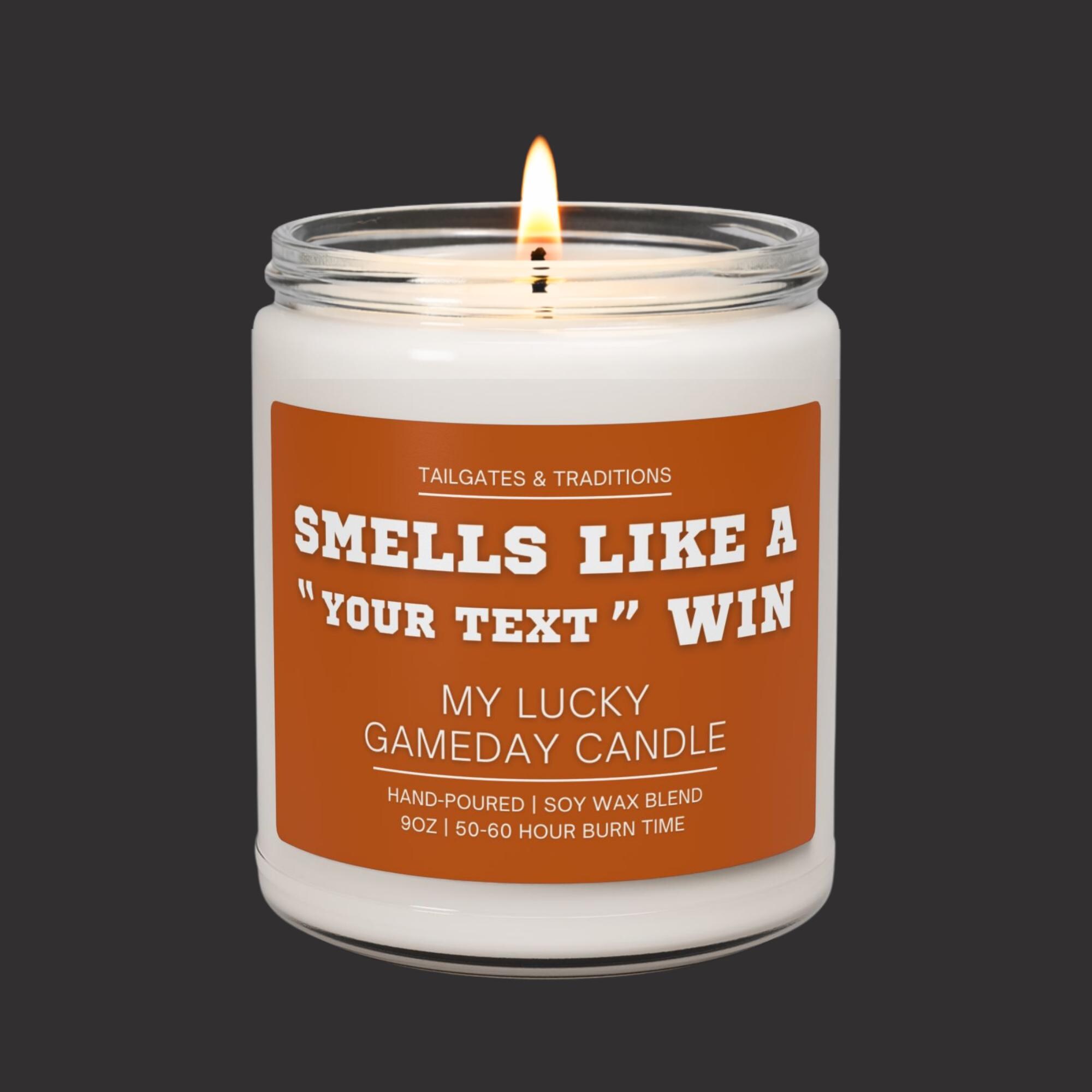 Make every win unforgettable with a personalized sports candle featuring your team name. The “Smells Like A Win” label adds humor and personality, making it perfect for game day, man caves, or gifting. A unique, funny gift that sports fans will actually use and love.