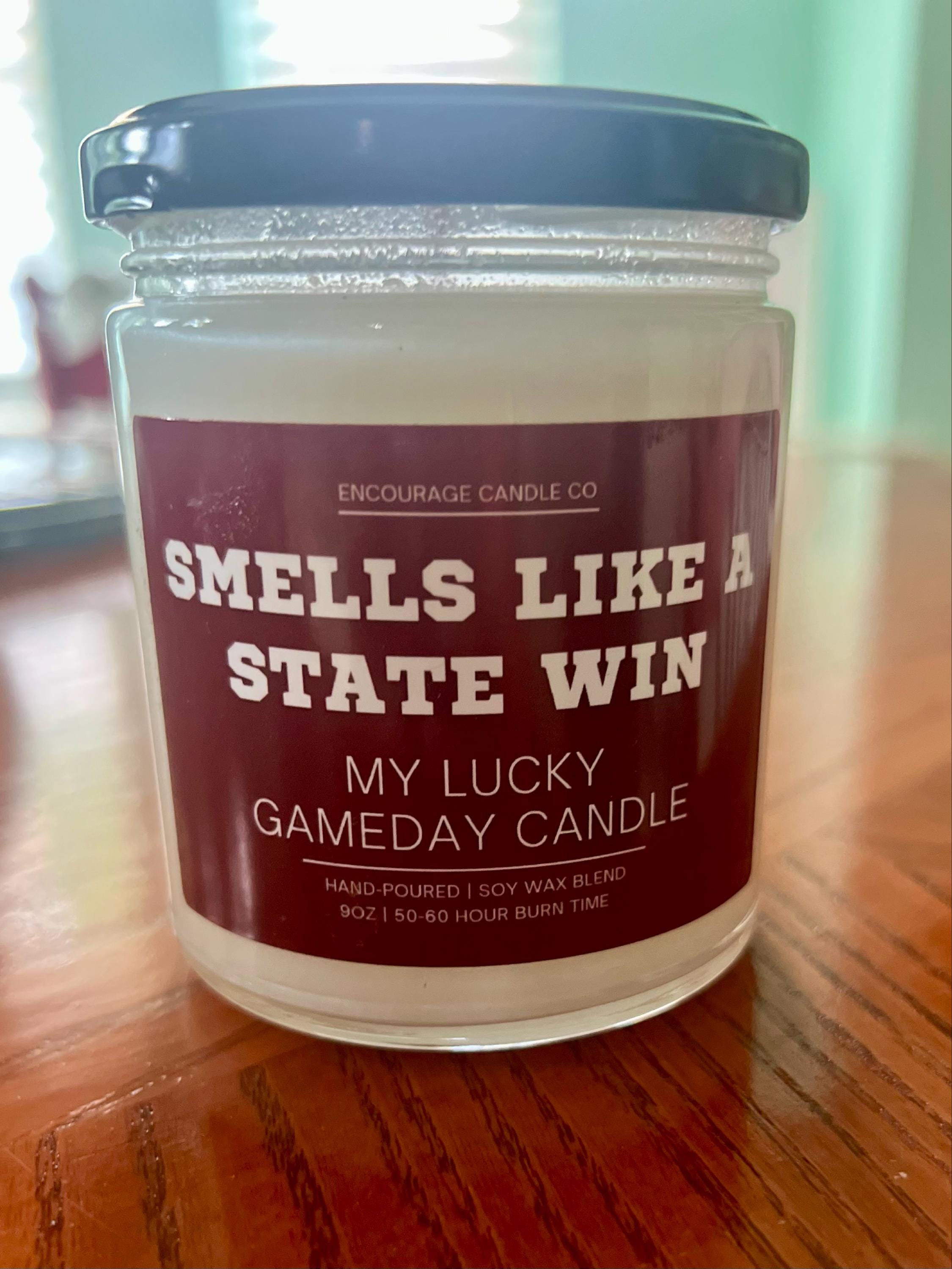 Our "Smells Like a Win" personalized sports candles are the ultimate addition to your gameday décor. This custom labeled sport themed gift, also known as "My Lucky Gameday Candle", is perfect for any die-hard college sports fan. Light up this sport-themed candle and let the smell of victory fill the air, making every game day a winning experience.