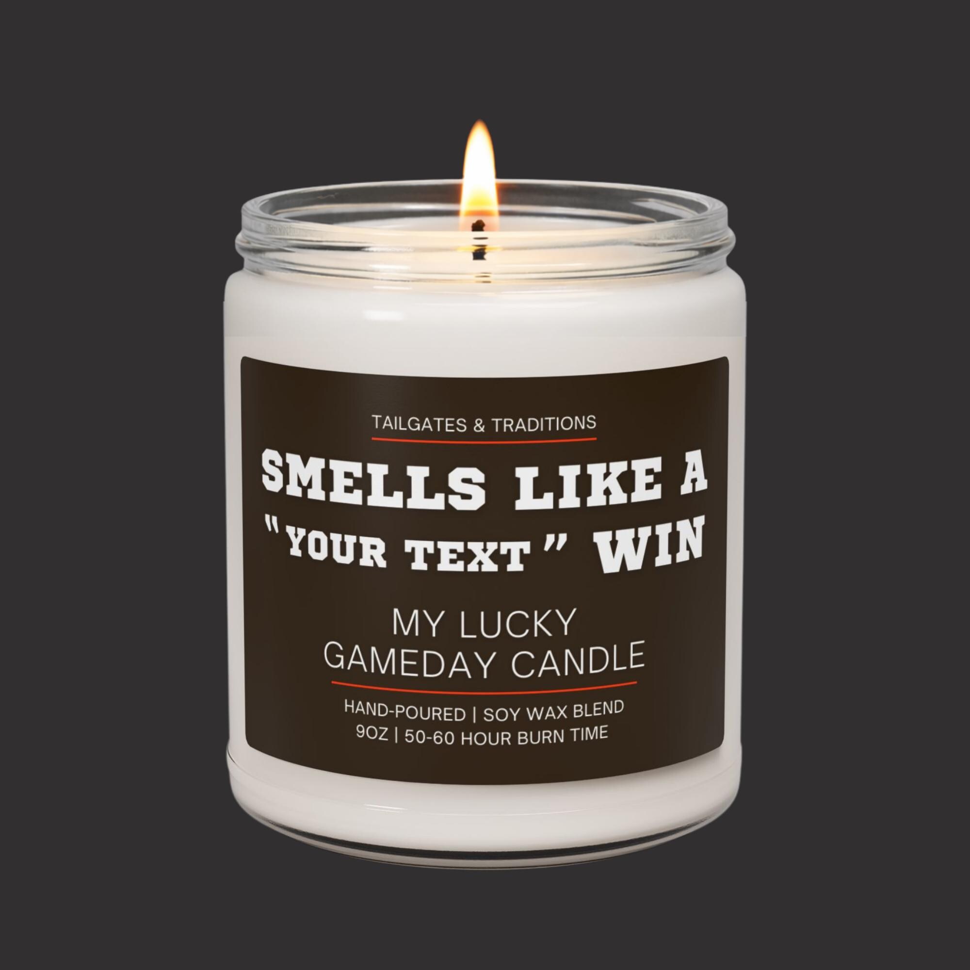 Upgrade your home decor with a personalized sports candle. Add your team name and enjoy the “Smells Like A Win” label that makes this a perfect gift for fans and sports lovers.