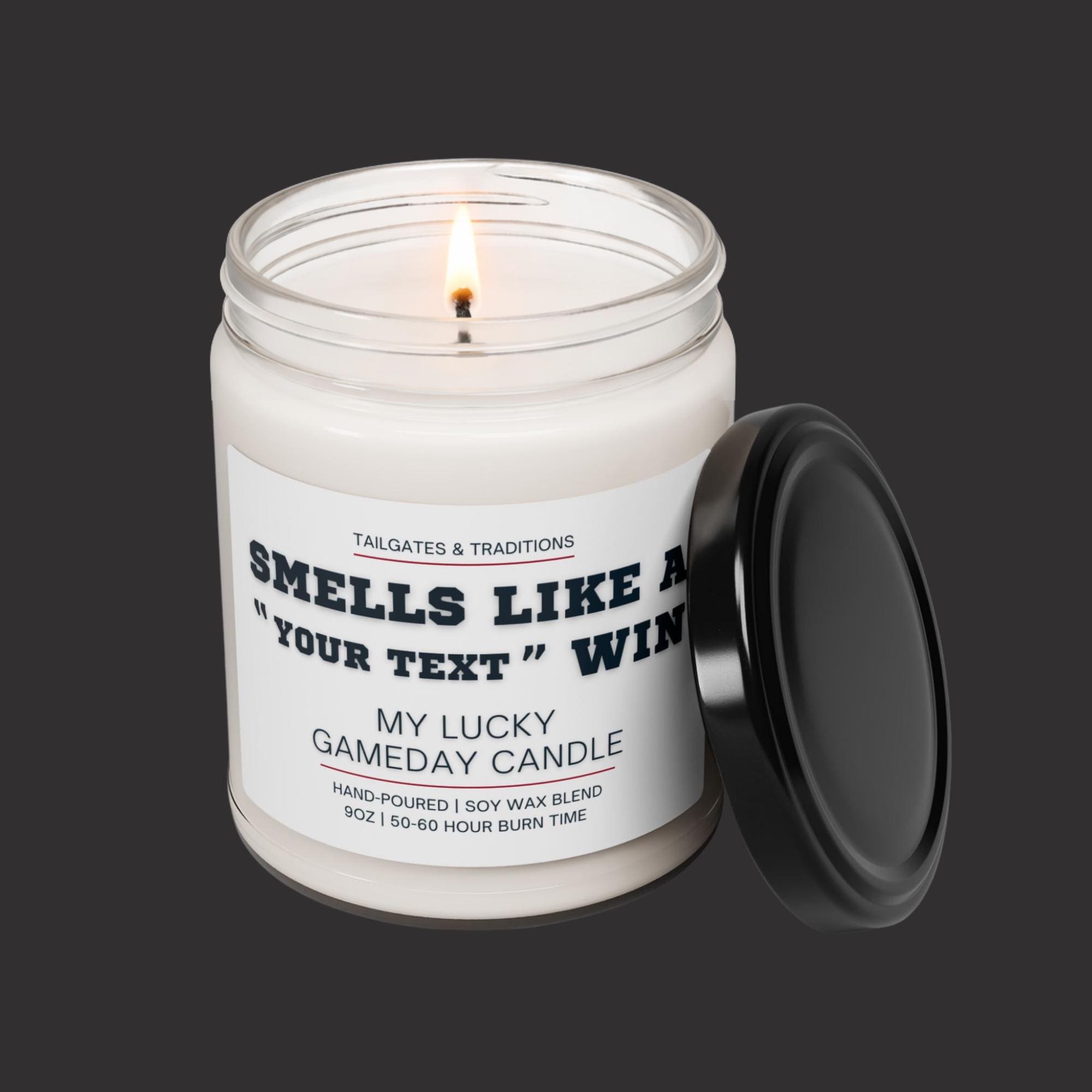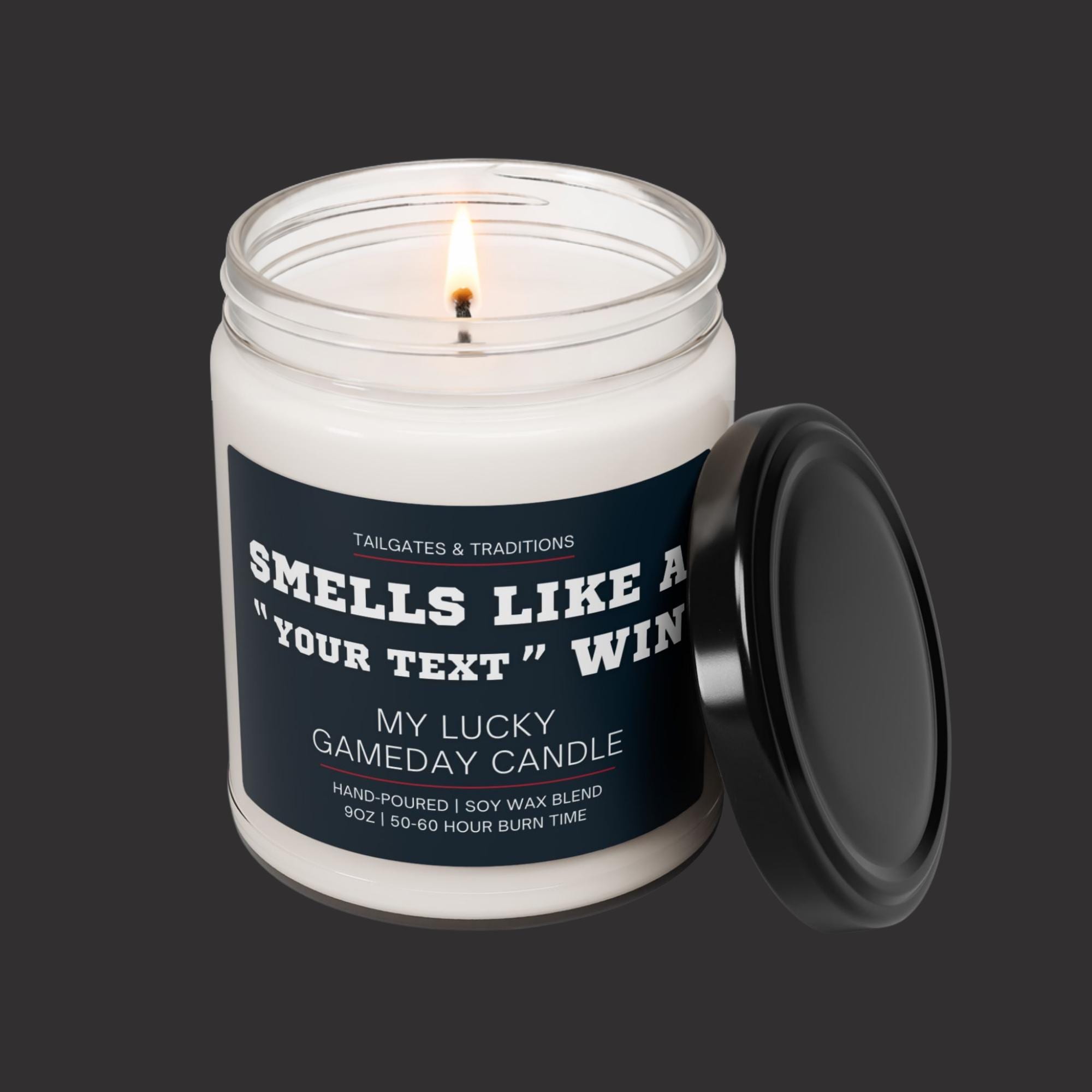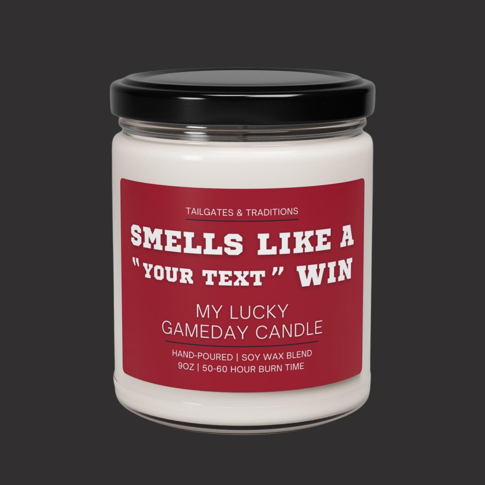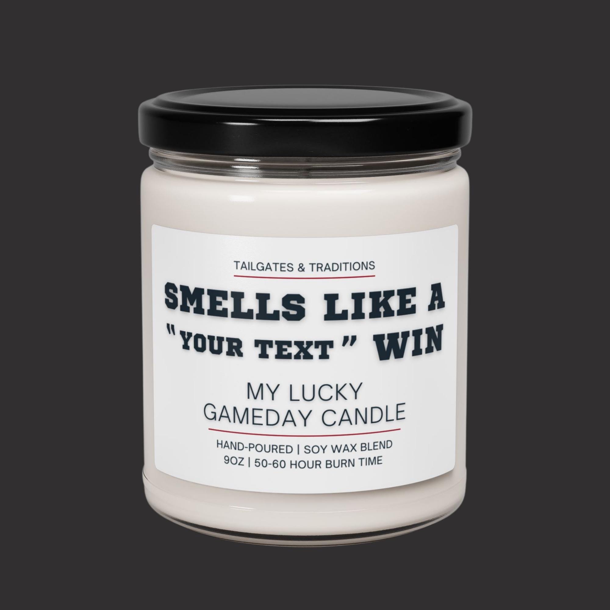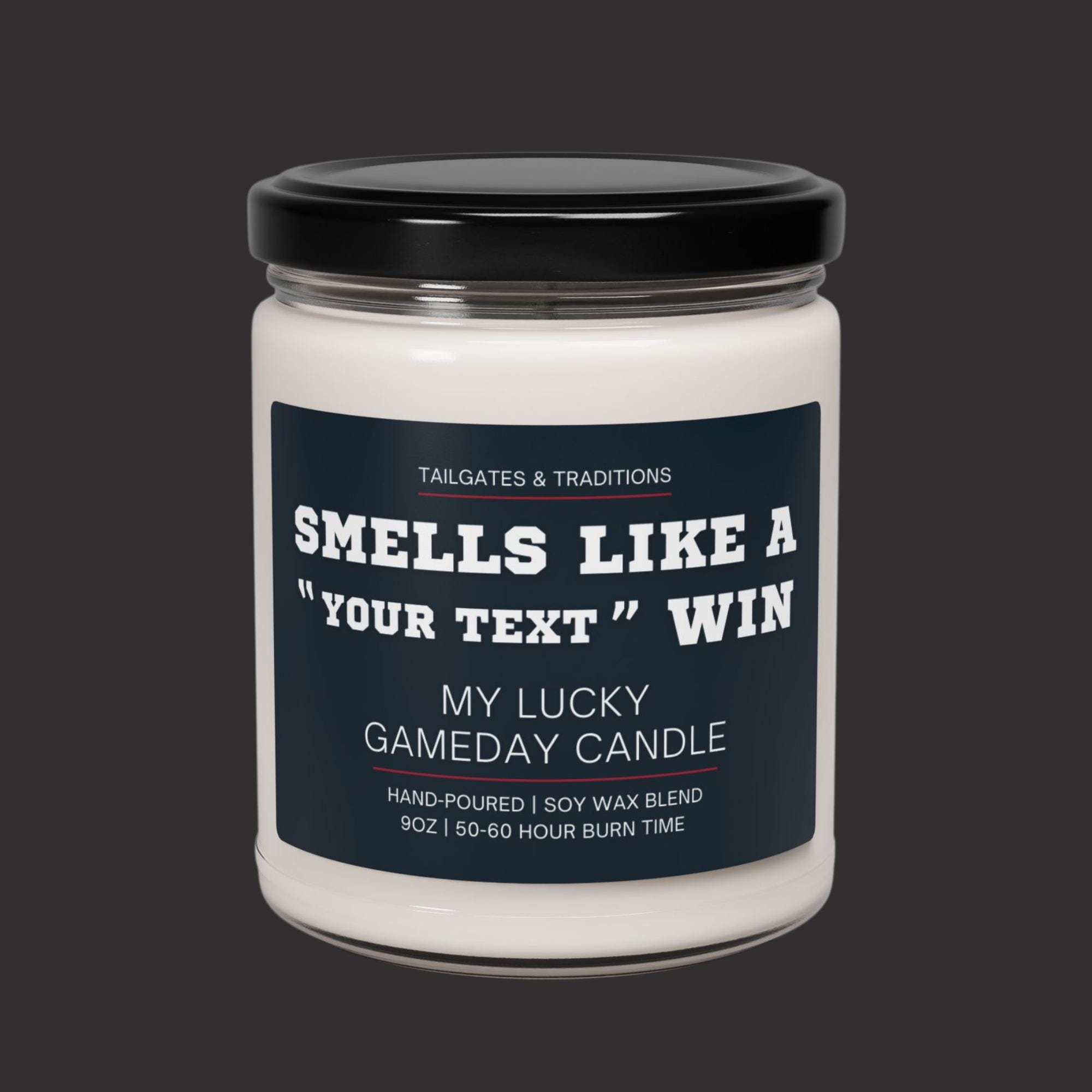 Our "Smells Like a Win" personalized sports candles are the ultimate addition to your gameday décor. This custom labeled sport themed gift, also known as "My Lucky Gameday Candle", is perfect for any die-hard college or pro sports fan. Light up this sport-themed candle and let the smell of victory fill the air, making every game day a winning experience.