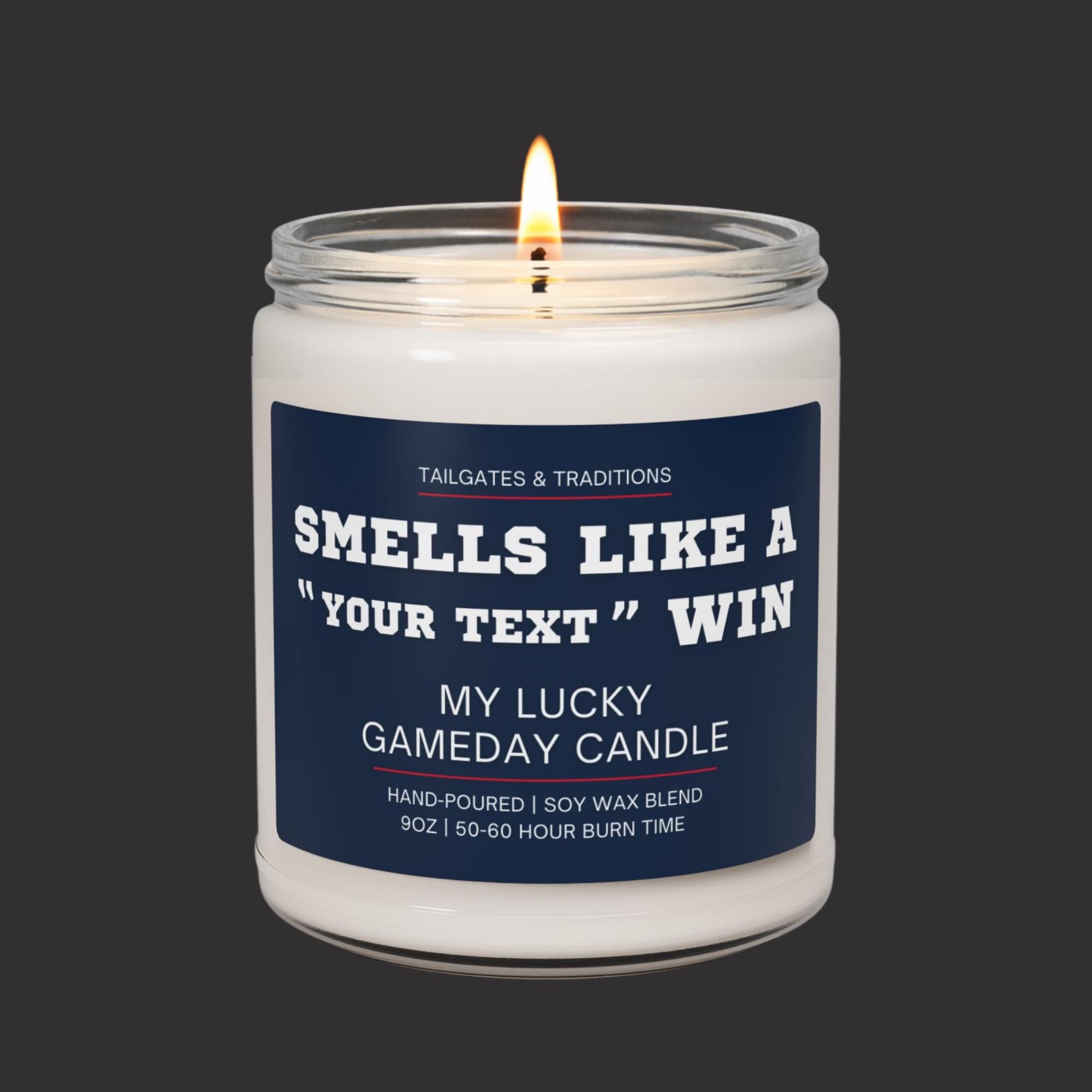 Celebrate football wins with this personalized candle. Customize the label with your team name for a fun and memorable “Smells Like A Win” gift.