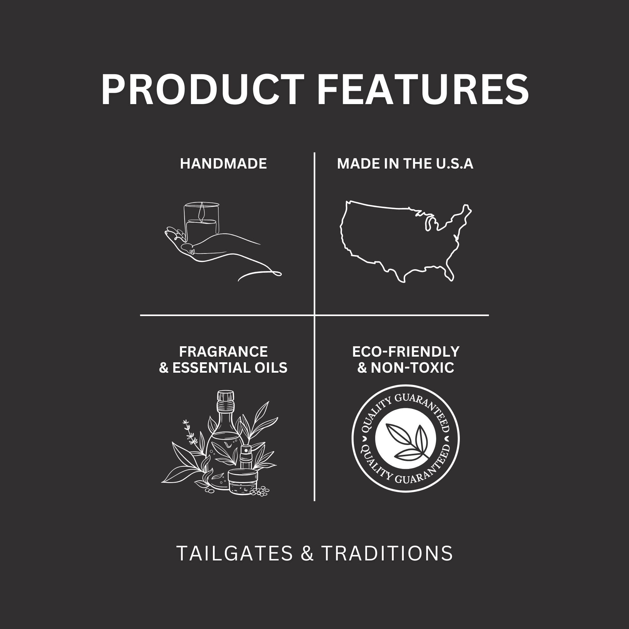 • We use premium soy wax blends that are thoroughly tested, ensuring an excellent hot and cold throw.
