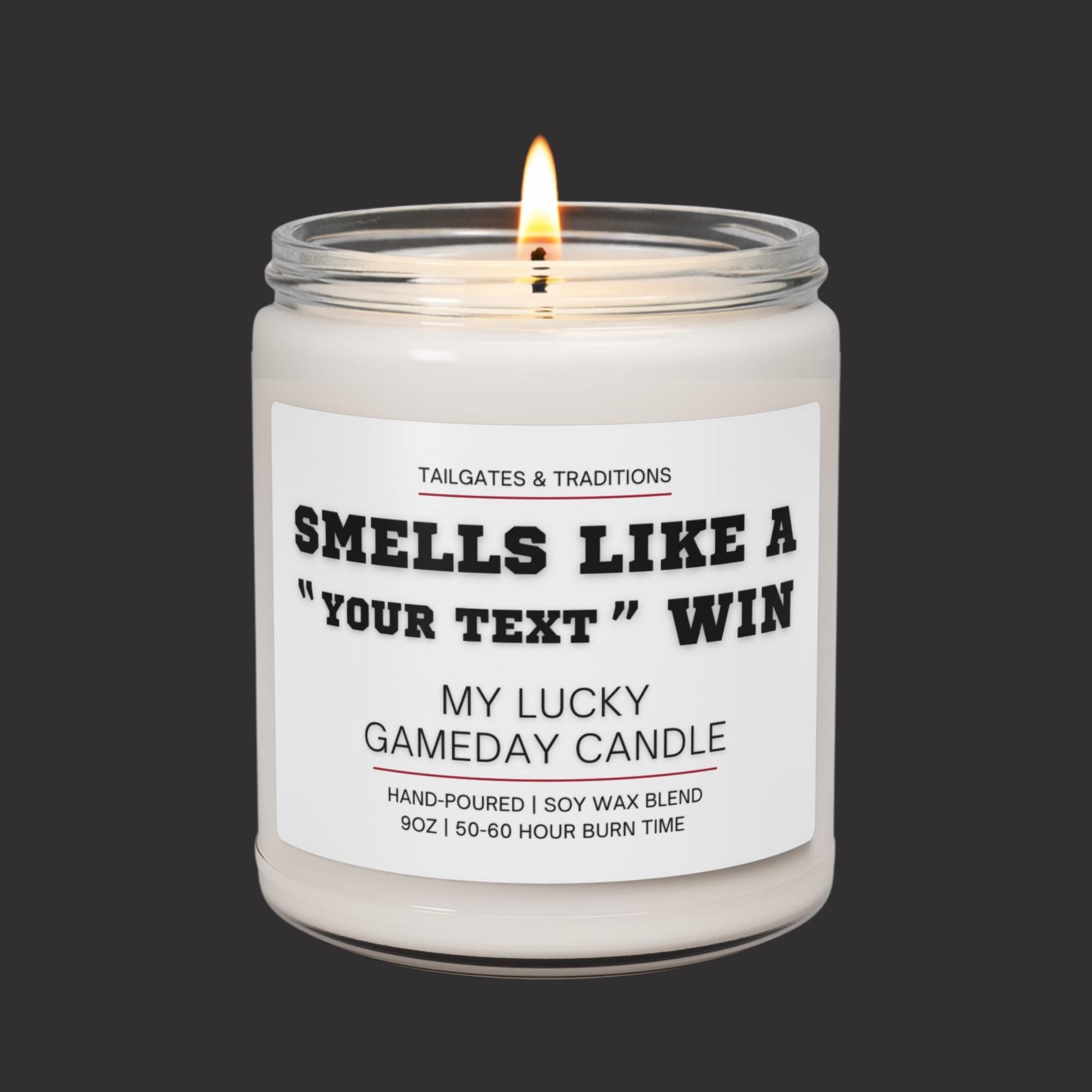 Score big with this personalized football candle. Add your team name and enjoy the bold “Smells Like A Win” message. Perfect for tailgates, man caves, or gifting football fans who love a good laugh.
